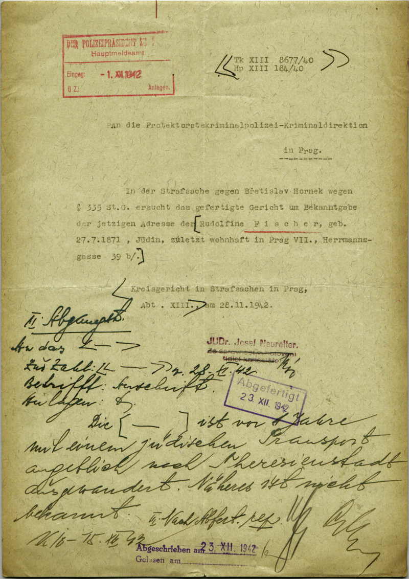 This database contains the names and fates of those who were deported from the territory of today’s Czech Republic, be it their homeland or may they have been deported to the Theresienstadt ghetto before from different european countries. Further, it contains basic information on those men, women and children, most of whom were Roma or Sinti, who died as prisoners of the so-called „Gypsy camp I“ Lety u Písku.