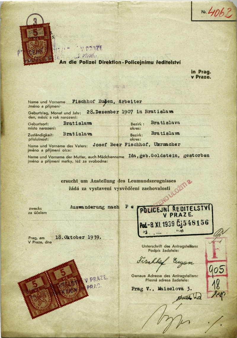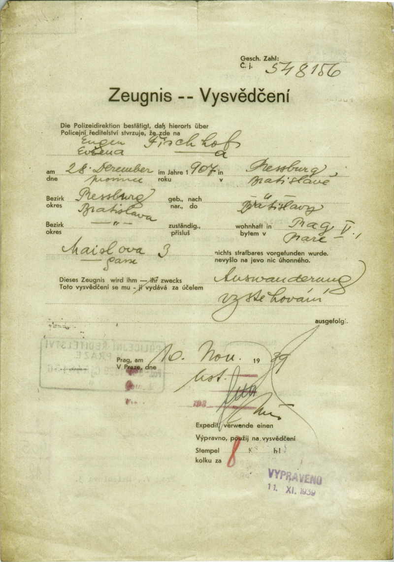 National archives Prague > Police Directorate Prague > 1941-1950 > F > Fischhof Evžen