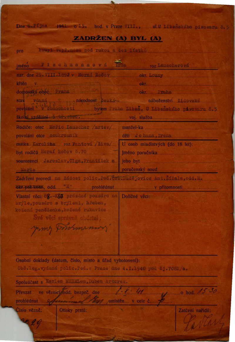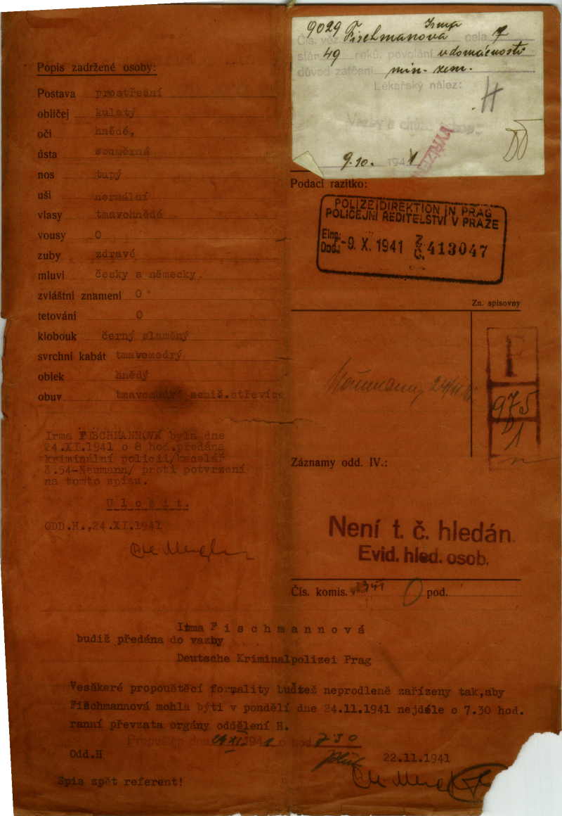 National archives Prague > Police Directorate Prague > 1941-1950 > F > Fischmannová Irma