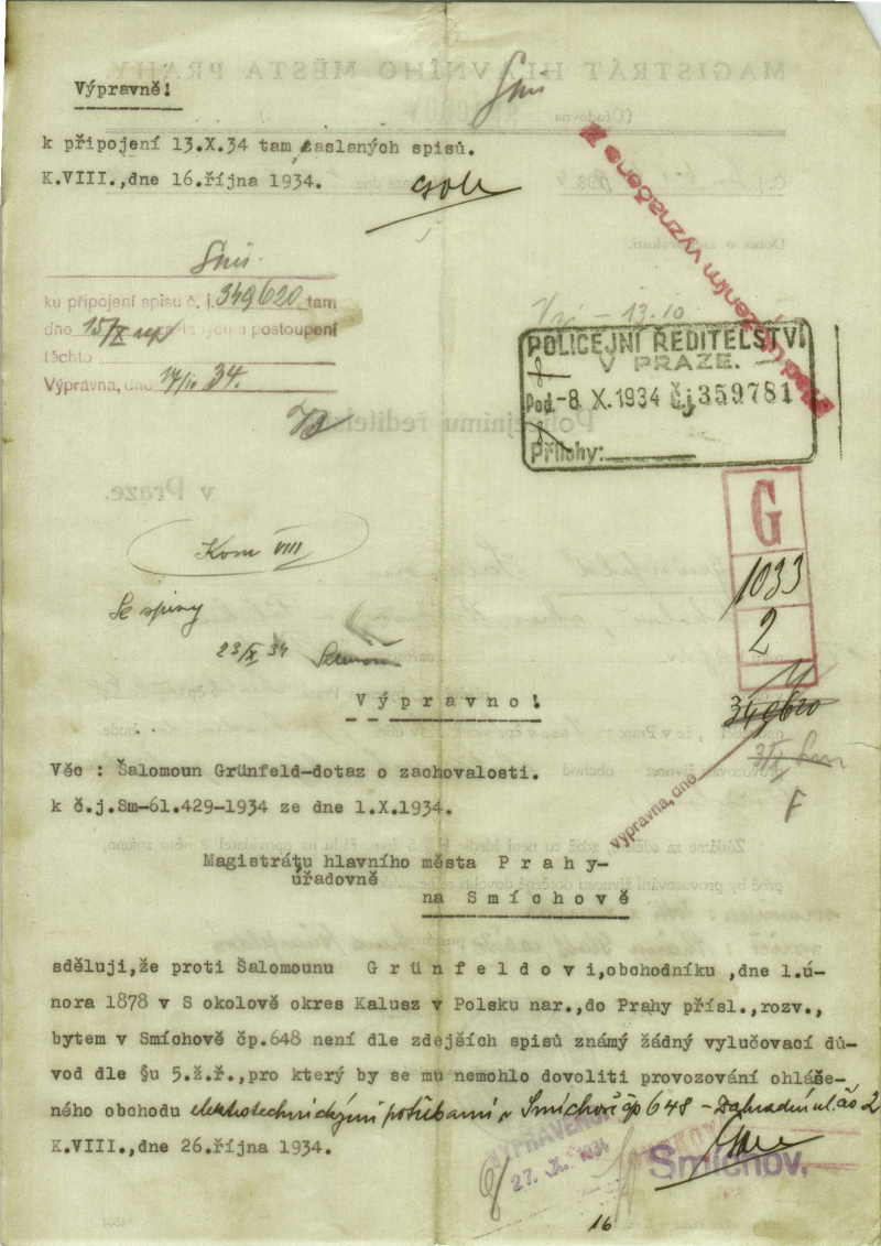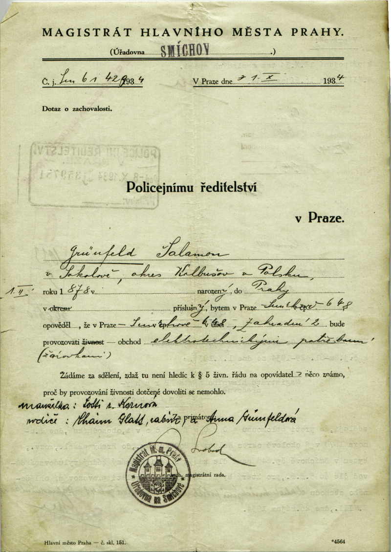 National archives Prague > Police Directorate Prague > 1931-1940 > G > Grünfeld Šalomoun