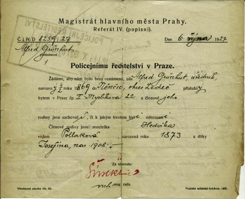 Grünhut Alfred: Probity investigation
