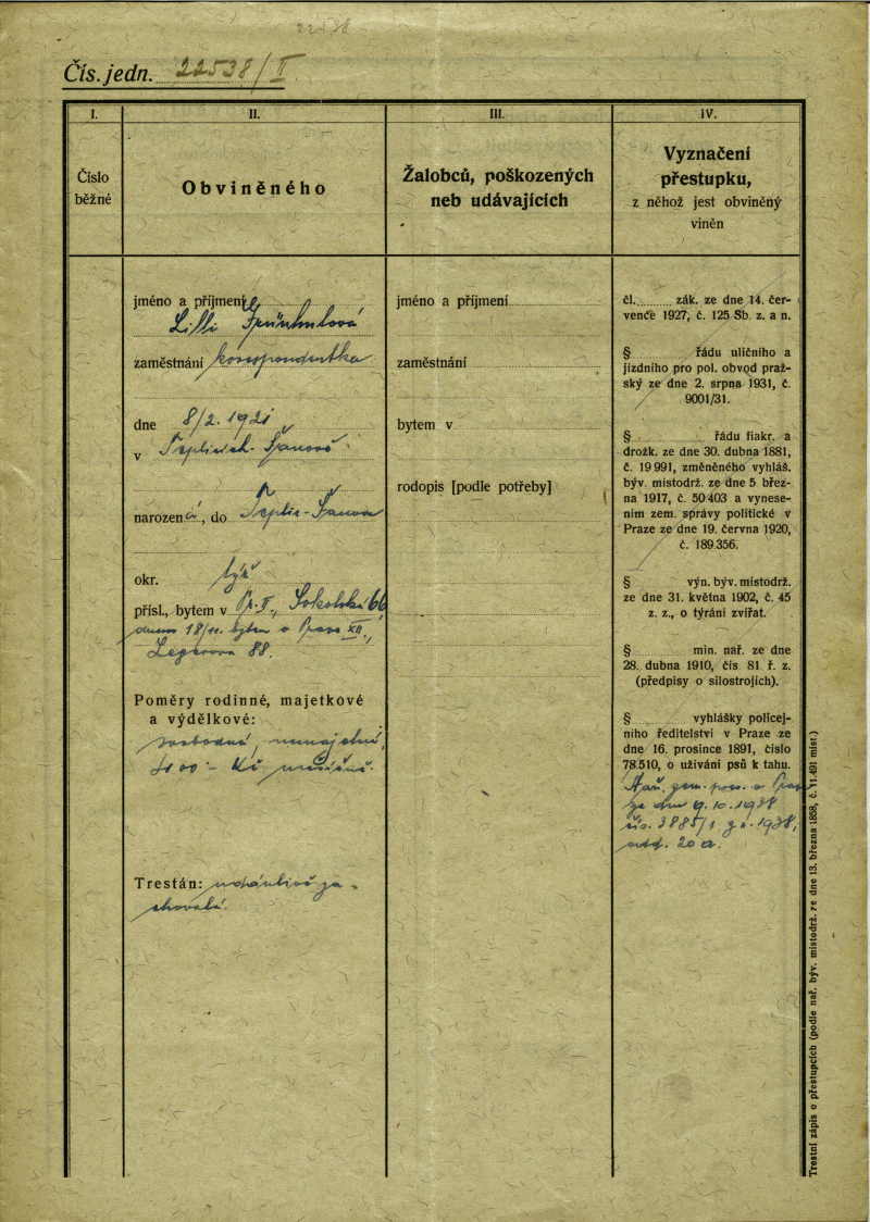 National archives Prague > Police Directorate Prague > 1931-1940 > G > Grünhutová Lilly