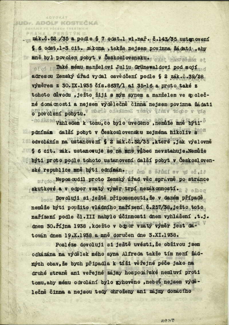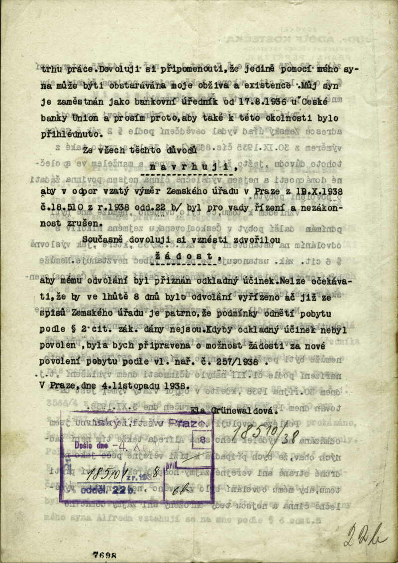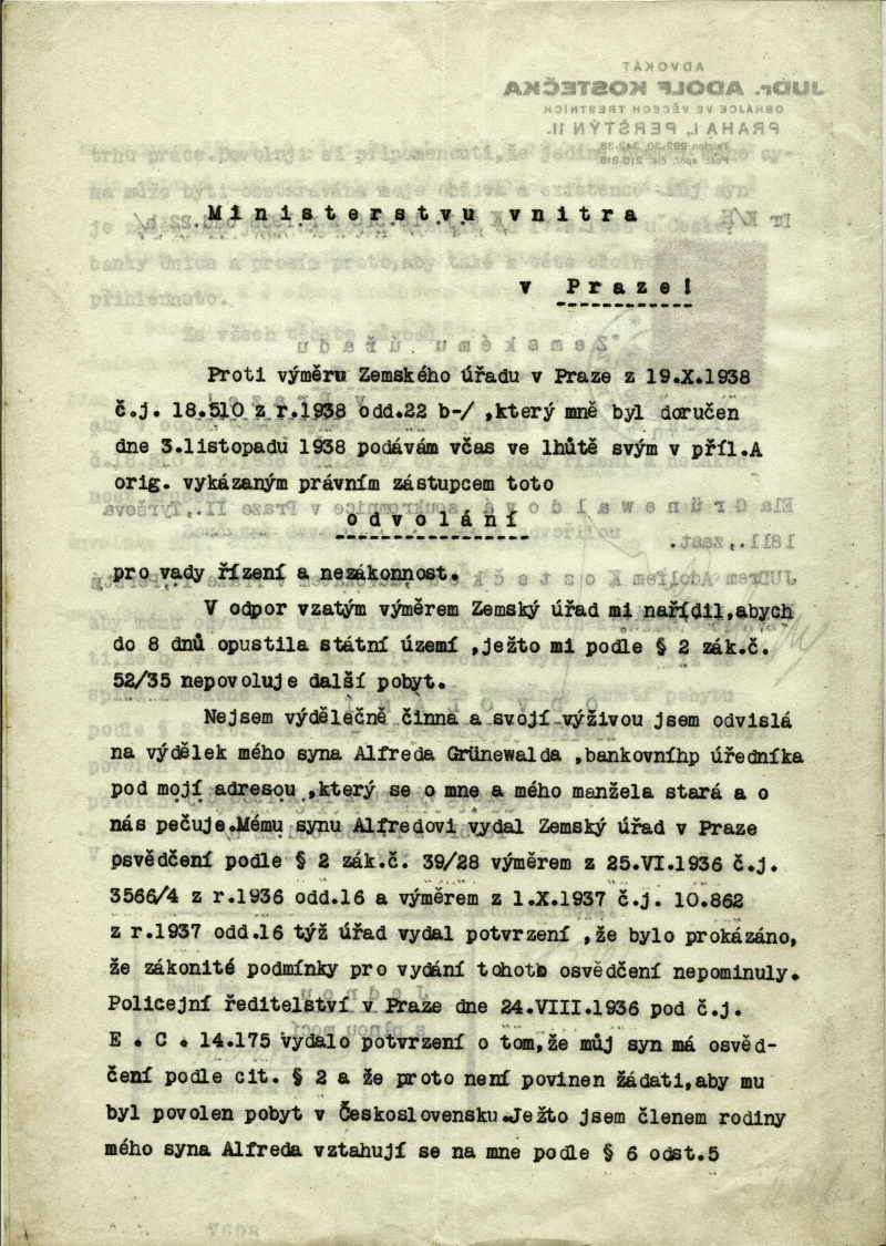 Grünewaldová Ella: Odvolání proti vyhoštění