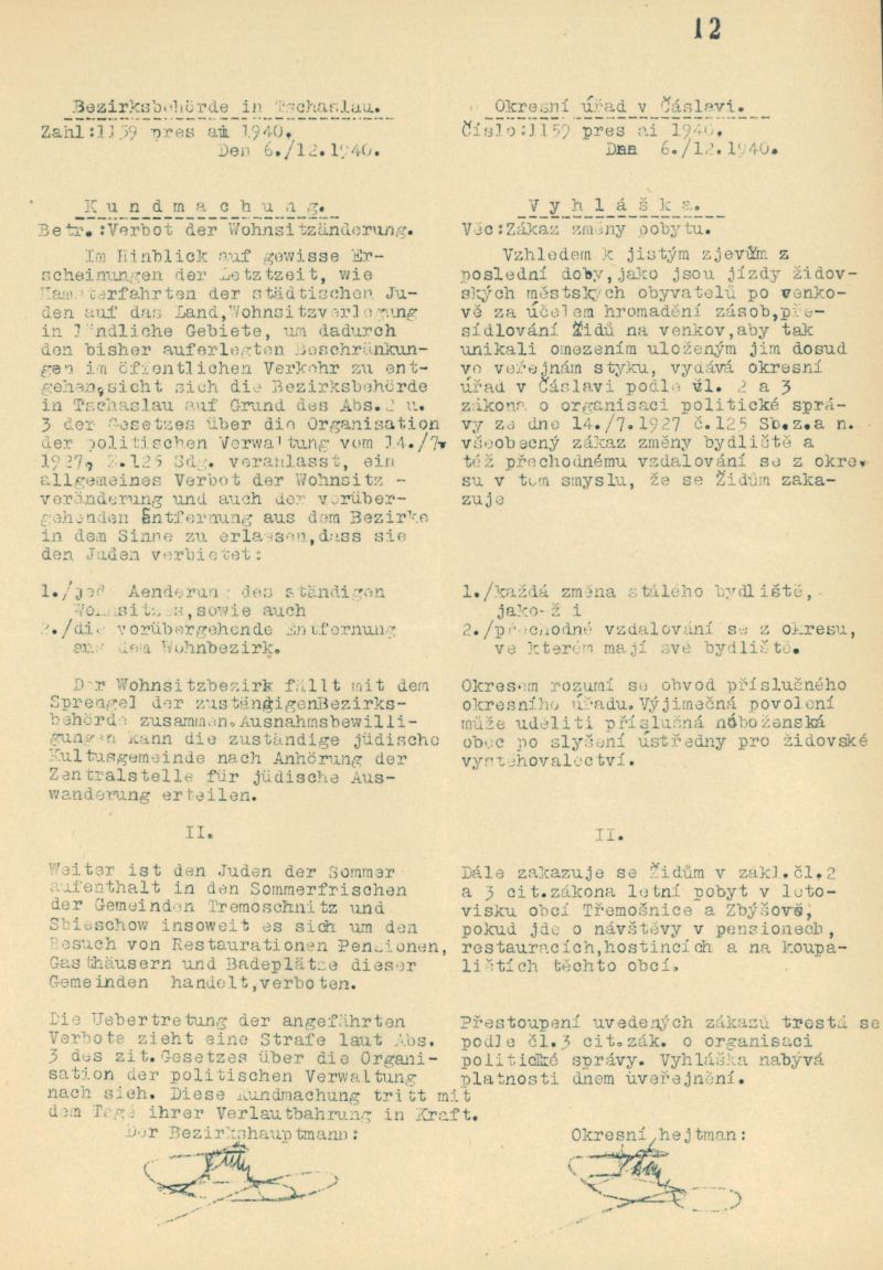 Zákaz změny pobytu Židů v Čáslavi