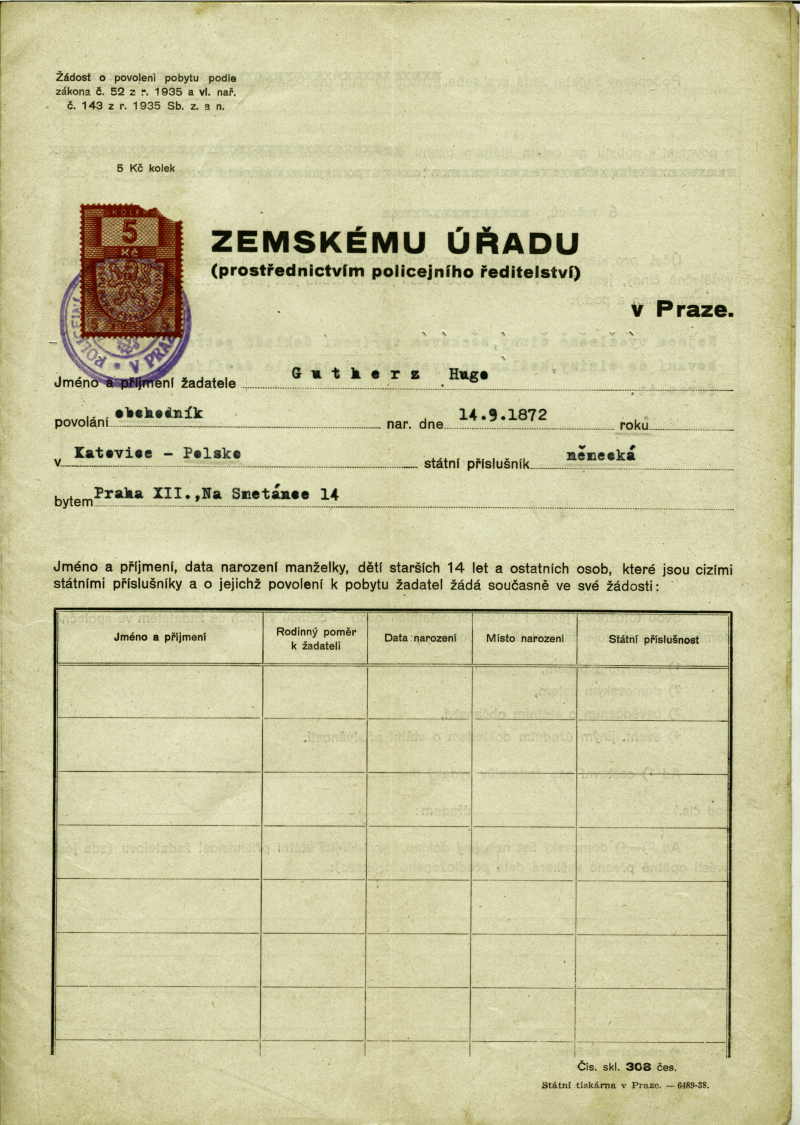 National archives Prague > Police Directorate Prague > 1931-1940 > G > Gutherz Hugo
