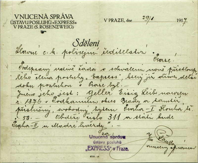 Geller Eusig Leib: Žádost o schválení nového člena posluhy