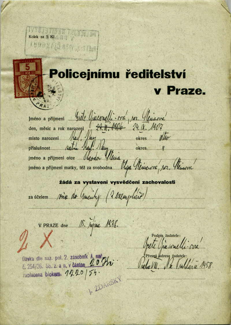 National archives Prague > Police Directorate Prague > 1931-1940 > G > Giacomelliová Grete
