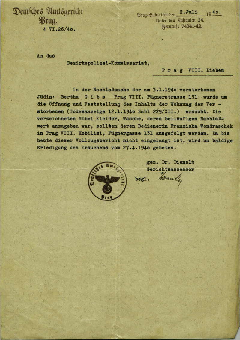 Gibsová Berta: Šetření o úmrtí