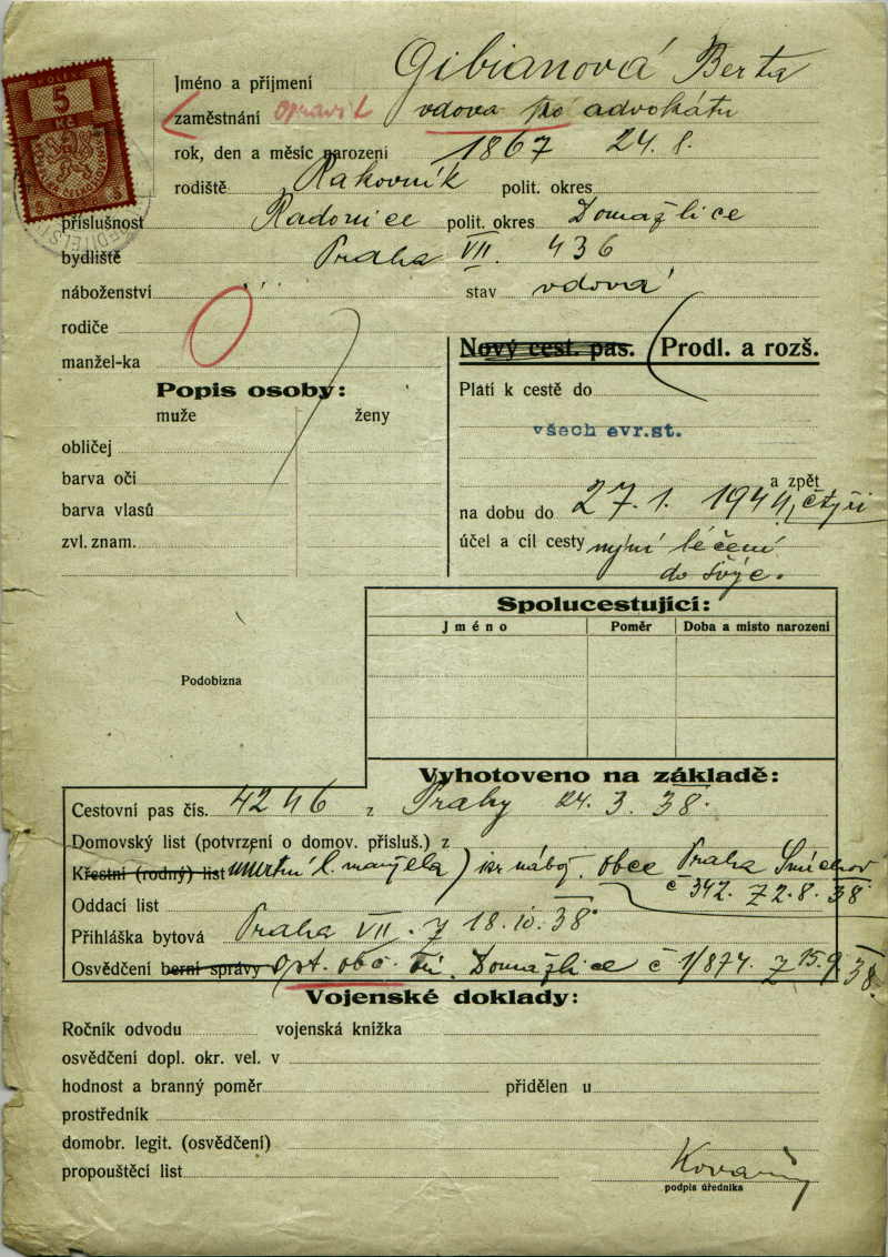 National archives Prague > Police Directorate Prague > 1931-1940 > G > Gibianová Berta