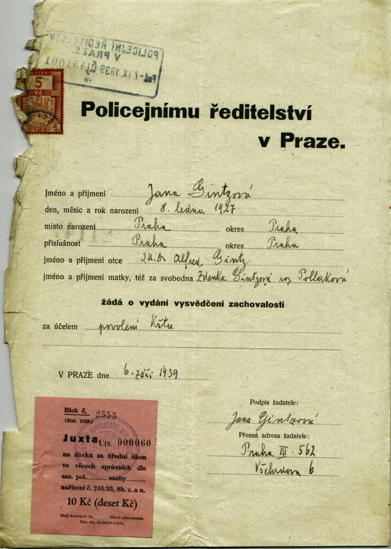 National archives Prague > Police Directorate Prague > 1931-1940 > G > Gintzová Johanna
