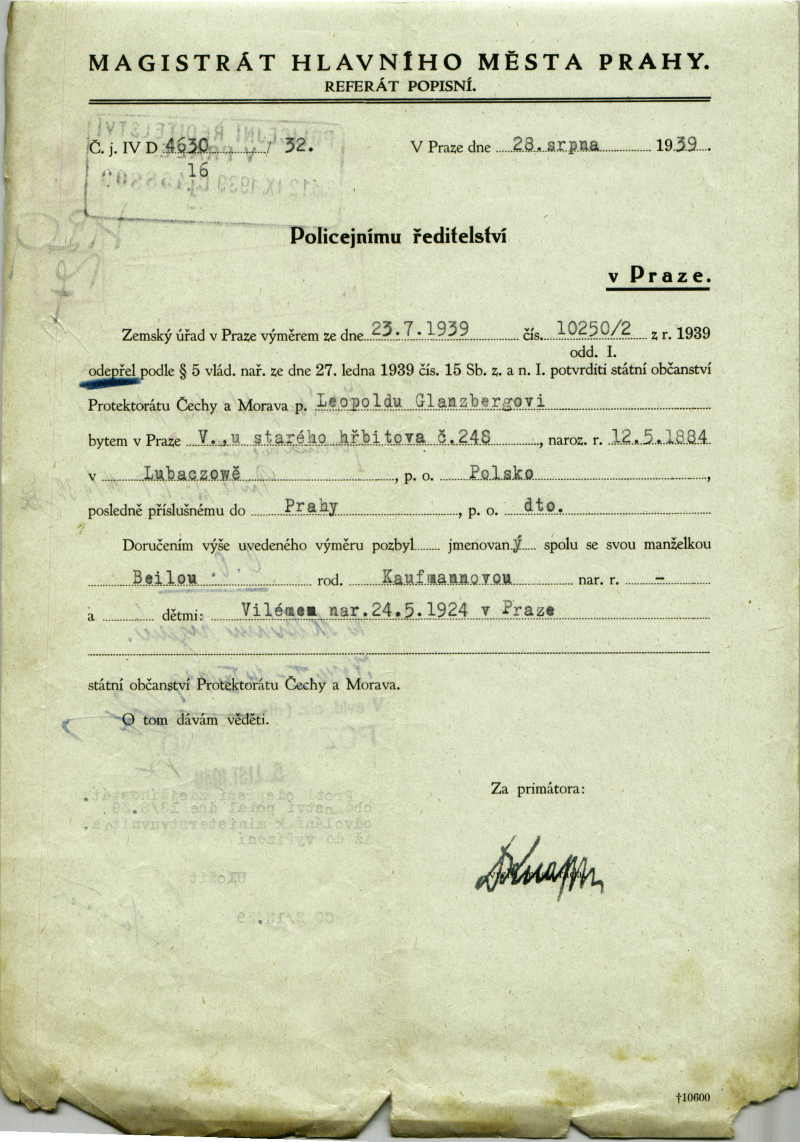 National archives Prague > Police Directorate Prague > 1931-1940 > G > Glanzberg Leopold