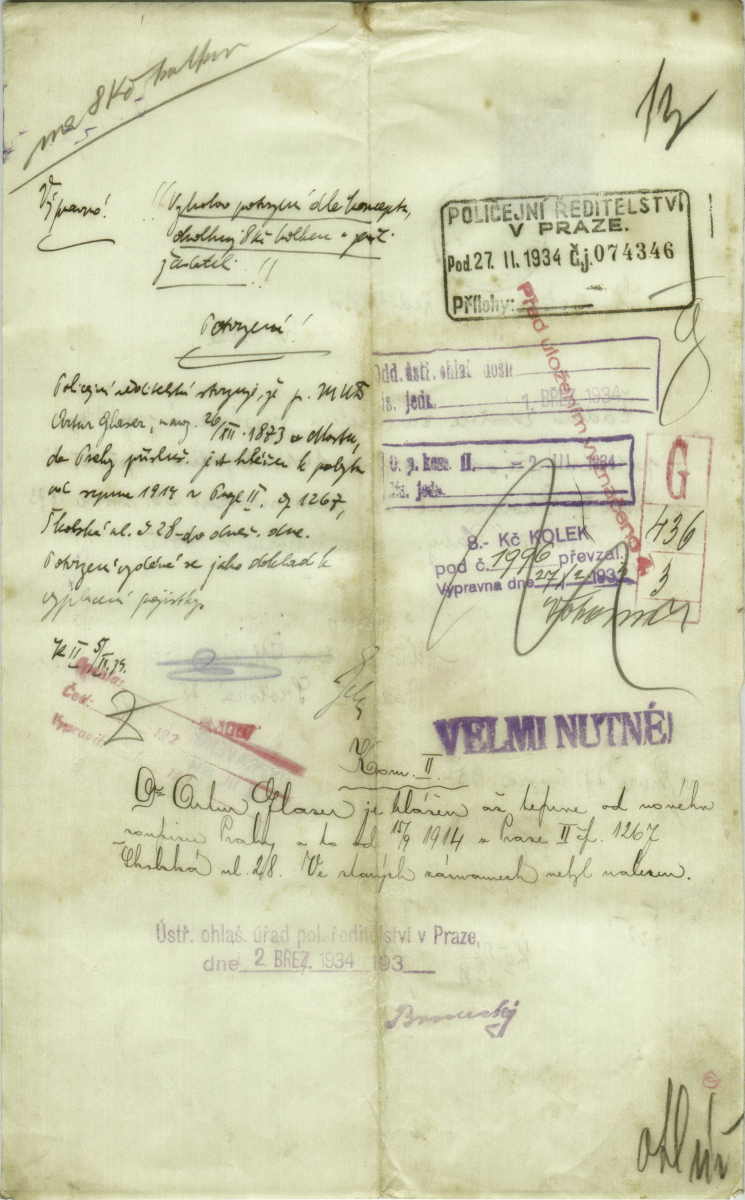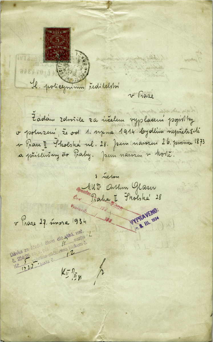 Glaser Artur: Žádost o potvrzení pobytu