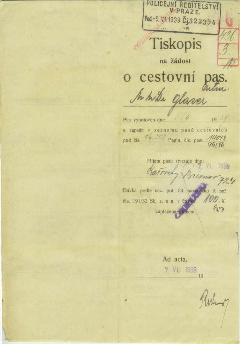 Glaser Artur: Passport application