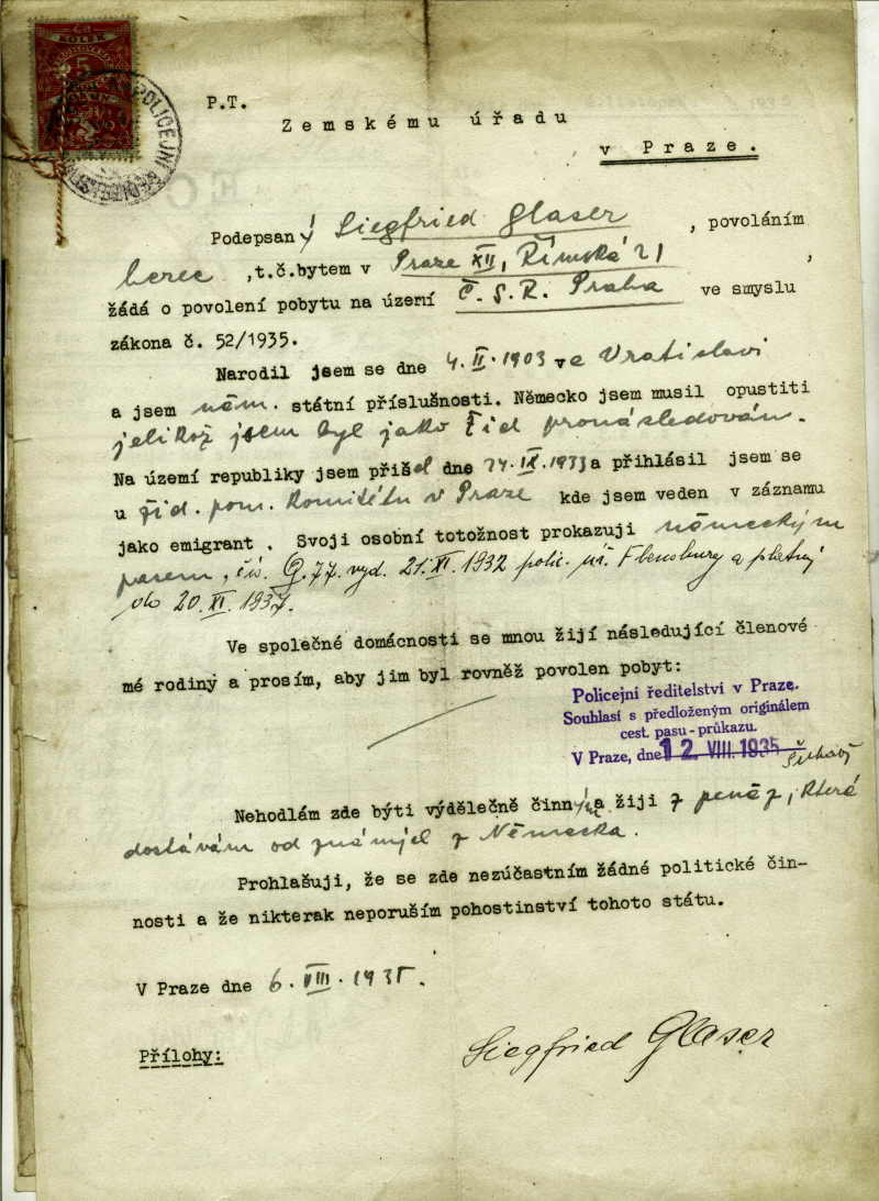 National archives Prague > Police Directorate Prague > 1931-1940 > G > Glaser Siegfried