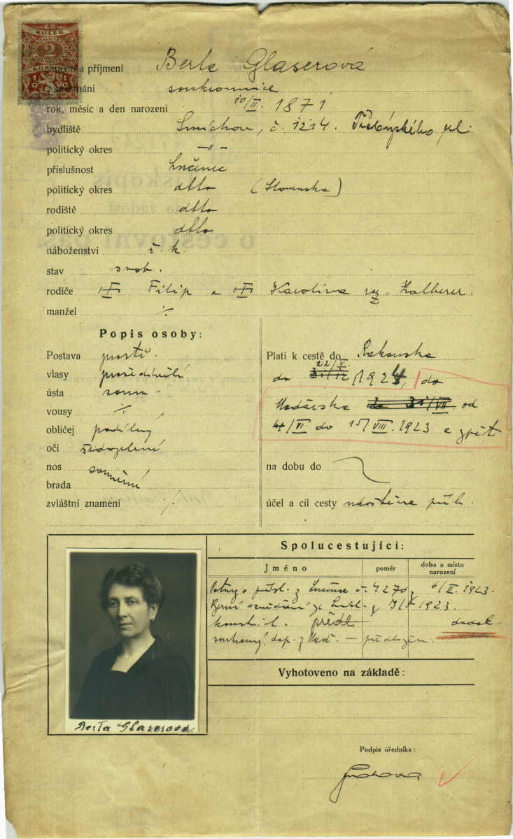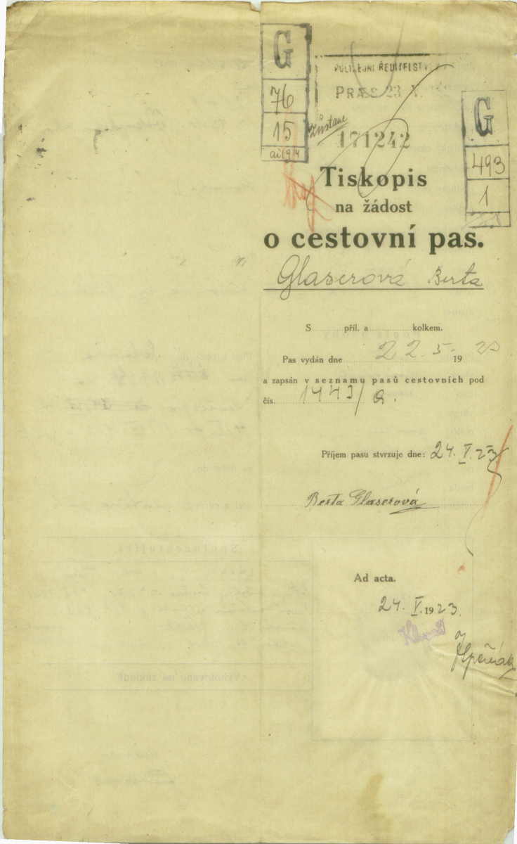 Glaserová Berta: Passport application