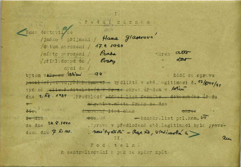 Glaserová Hanna: Žádost o opravu v občanské legitimaci