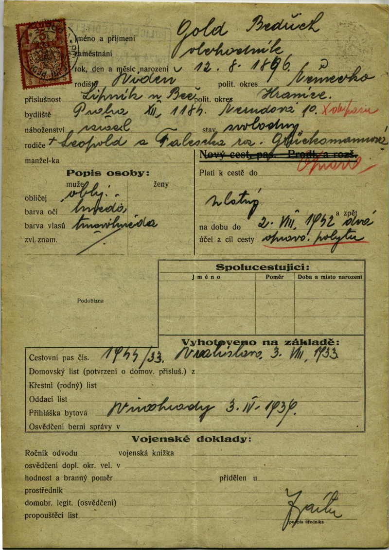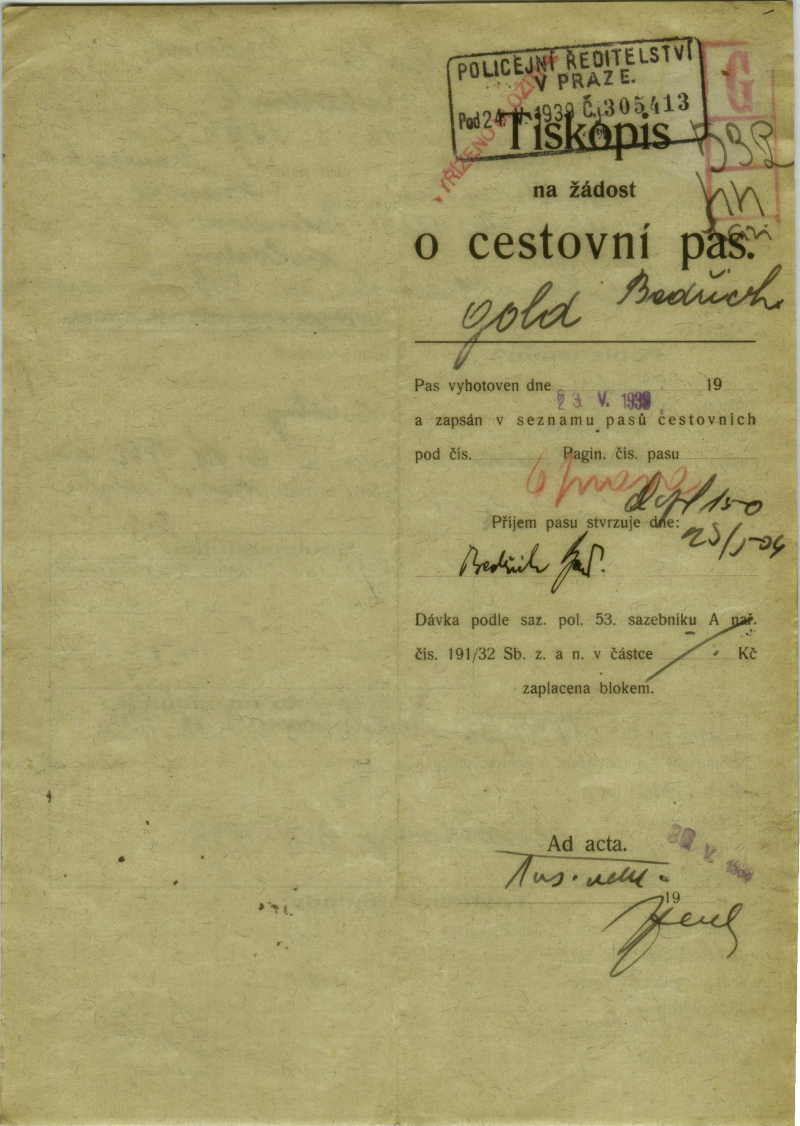 National archives Prague > Police Directorate Prague > 1931-1940 > G > Gold Bedřich