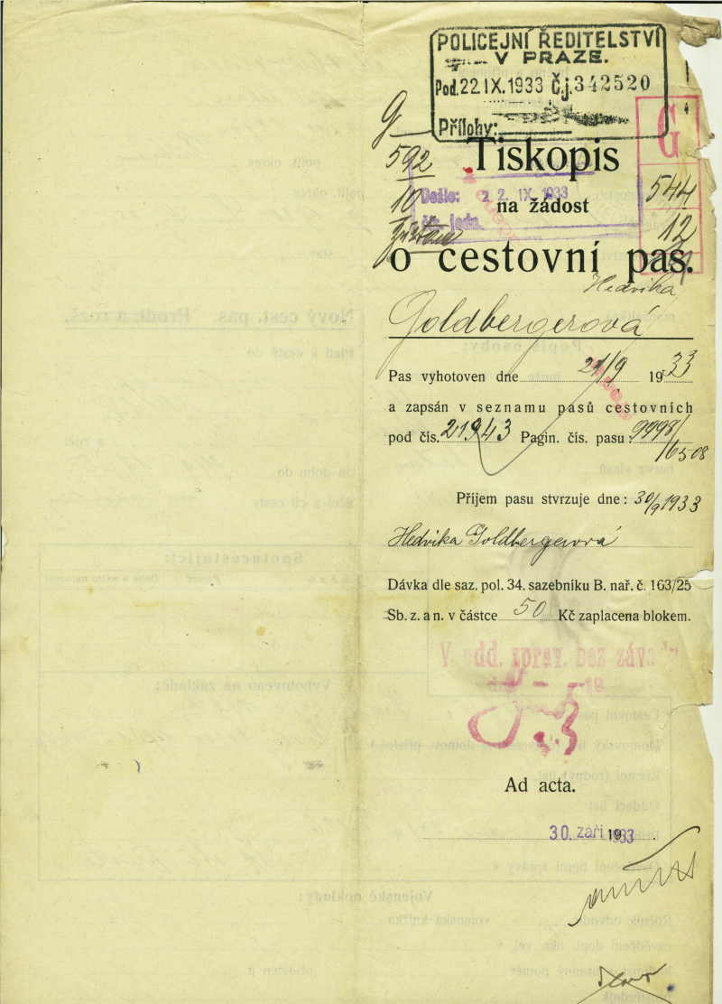 National archives Prague > Police Directorate Prague > 1931-1940 > G > Goldbergerová Hedvika