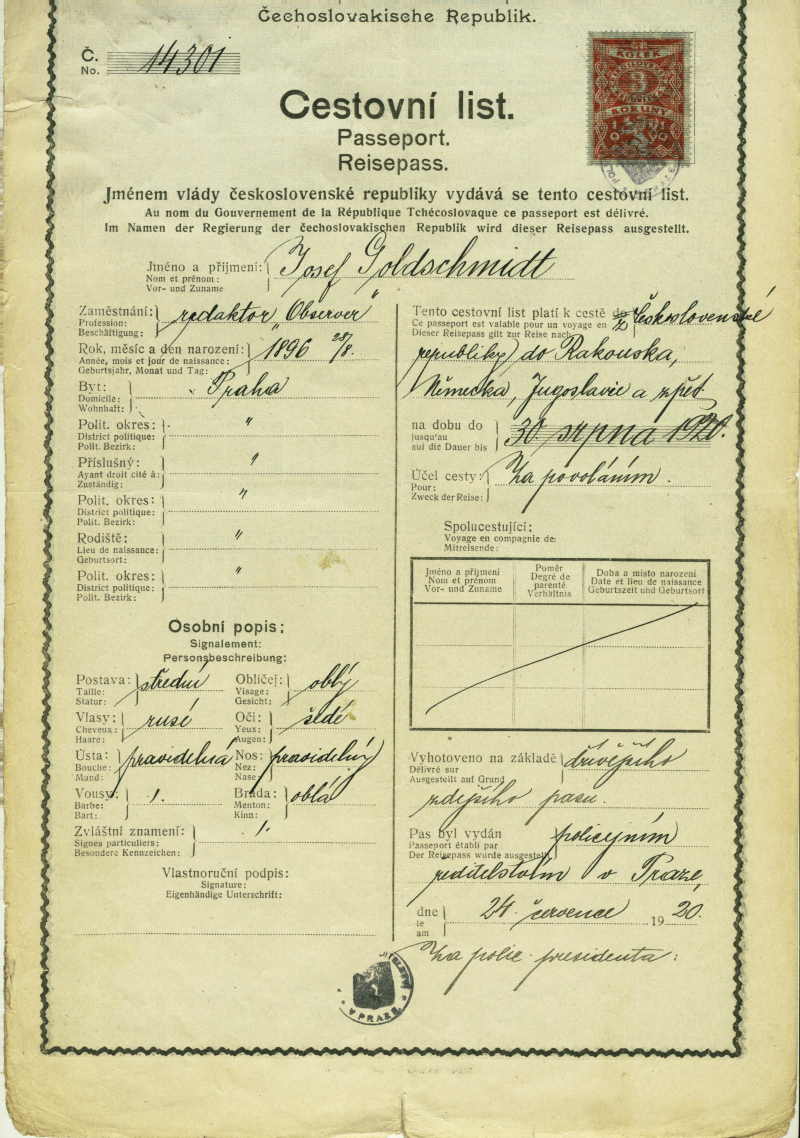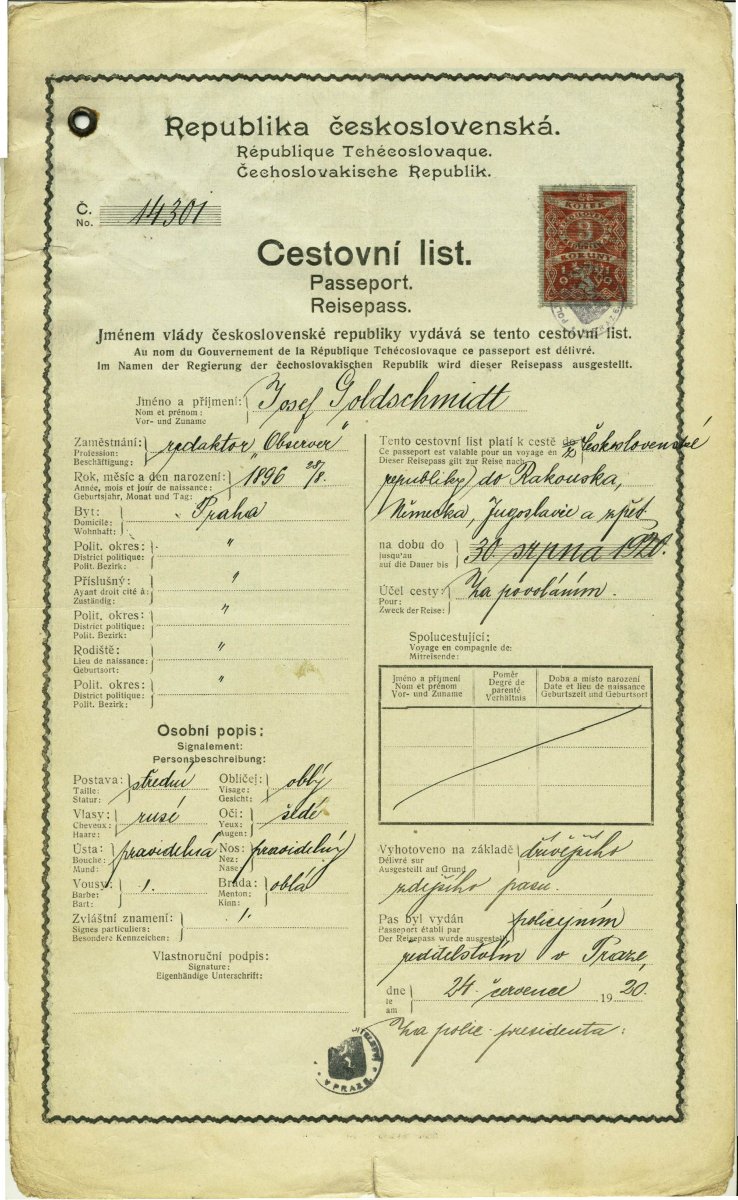 Goldschmidt Josef: Passport