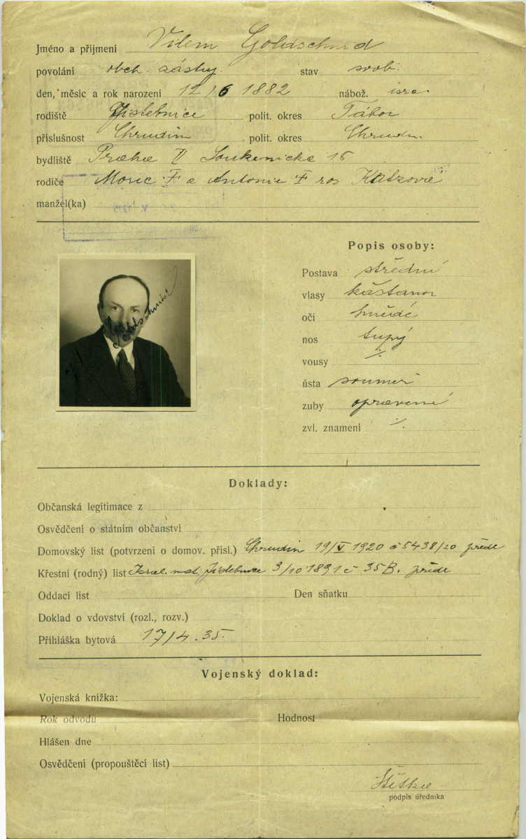 National archives Prague > Police Directorate Prague > 1931-1940 > G > Goldschmid Vilém