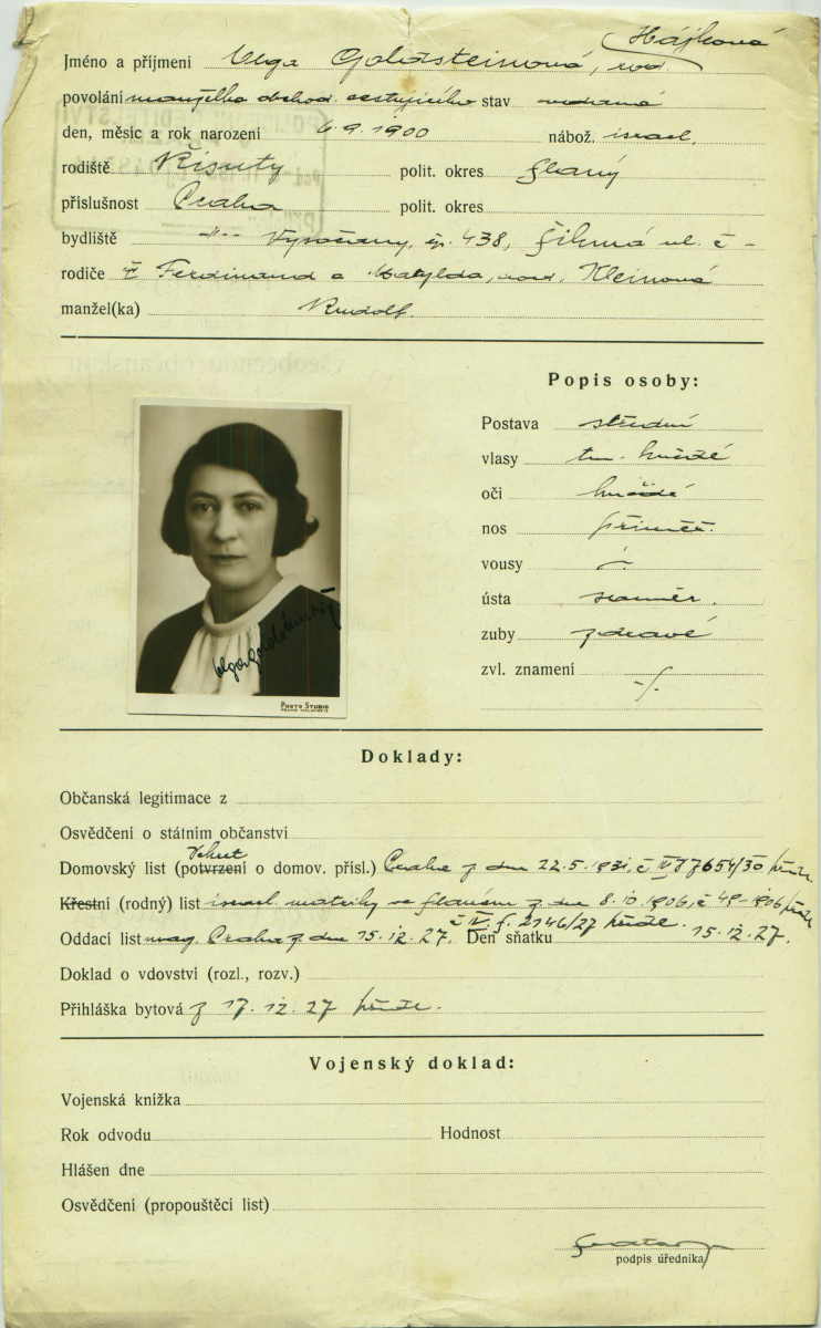 National archives Prague > Police Directorate Prague > 1931-1940 > G > Goldsteinová Olga