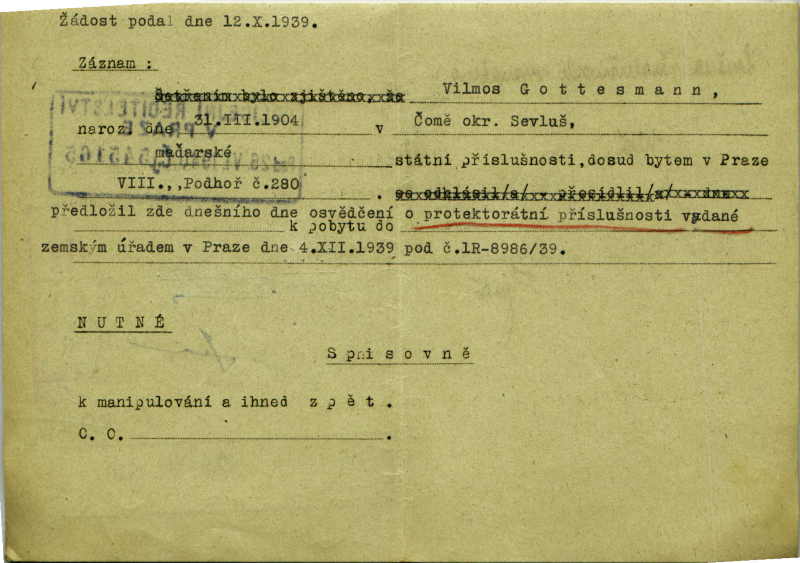 Gottesmann Wilhelm: Potvrzení o předložení osvědčení o státní příslušnosti