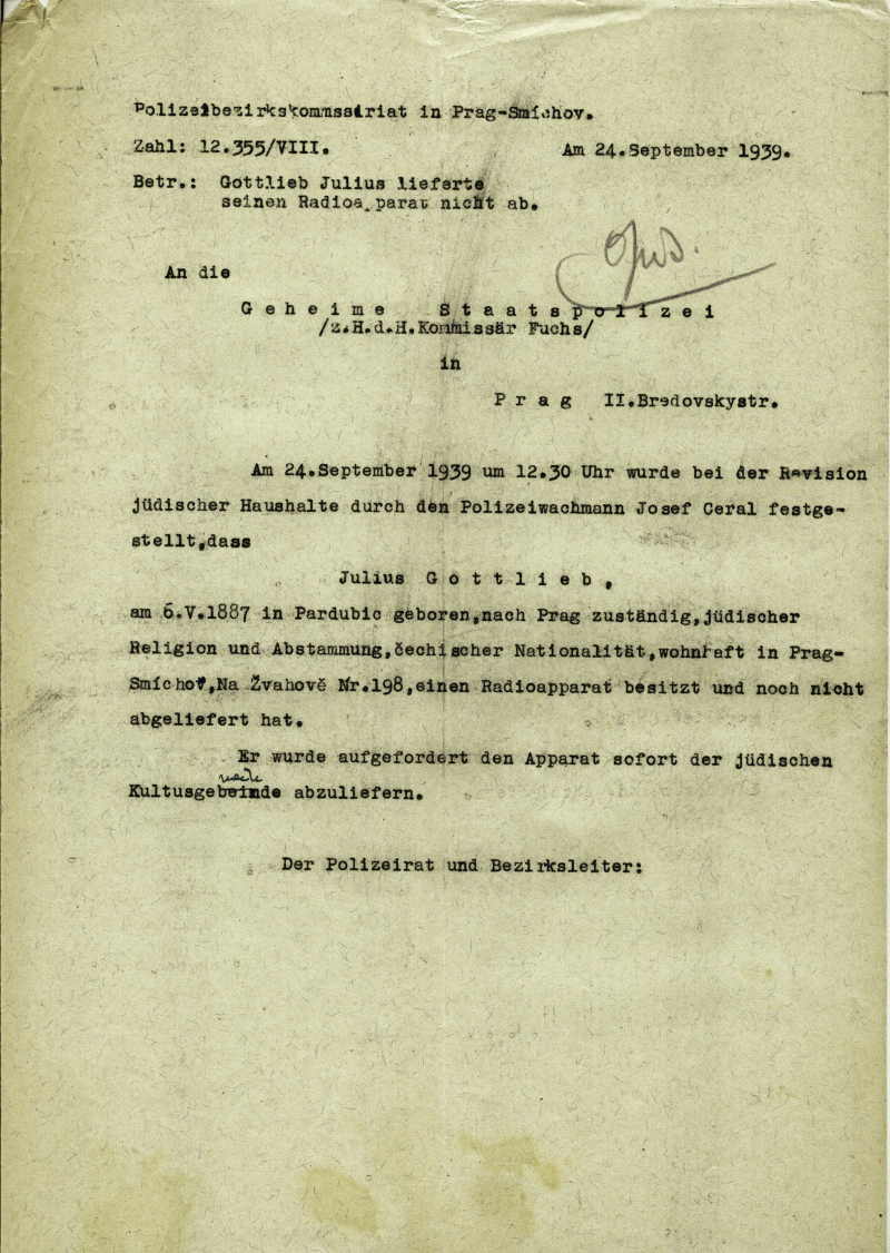 Gottlieb Julius: Nevyhovění nařízení o odevzdání rádia