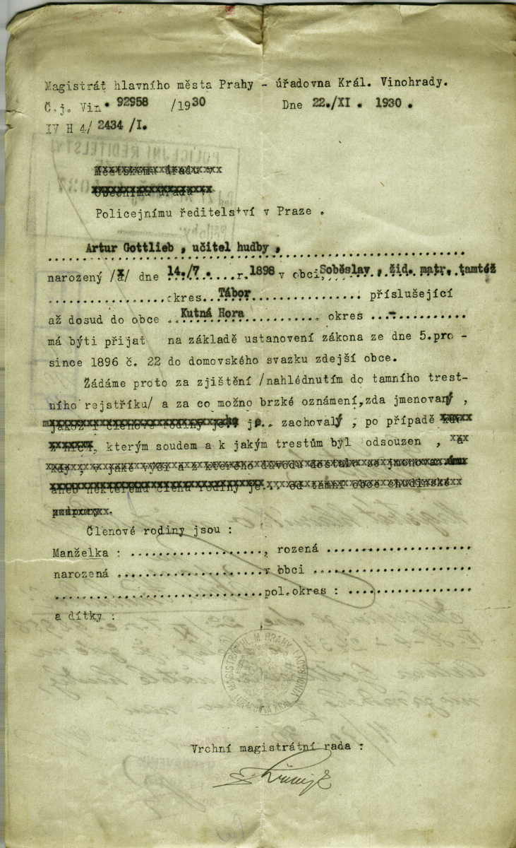 National archives Prague > Police Directorate Prague > 1931-1940 > G > Gottlieb Artur