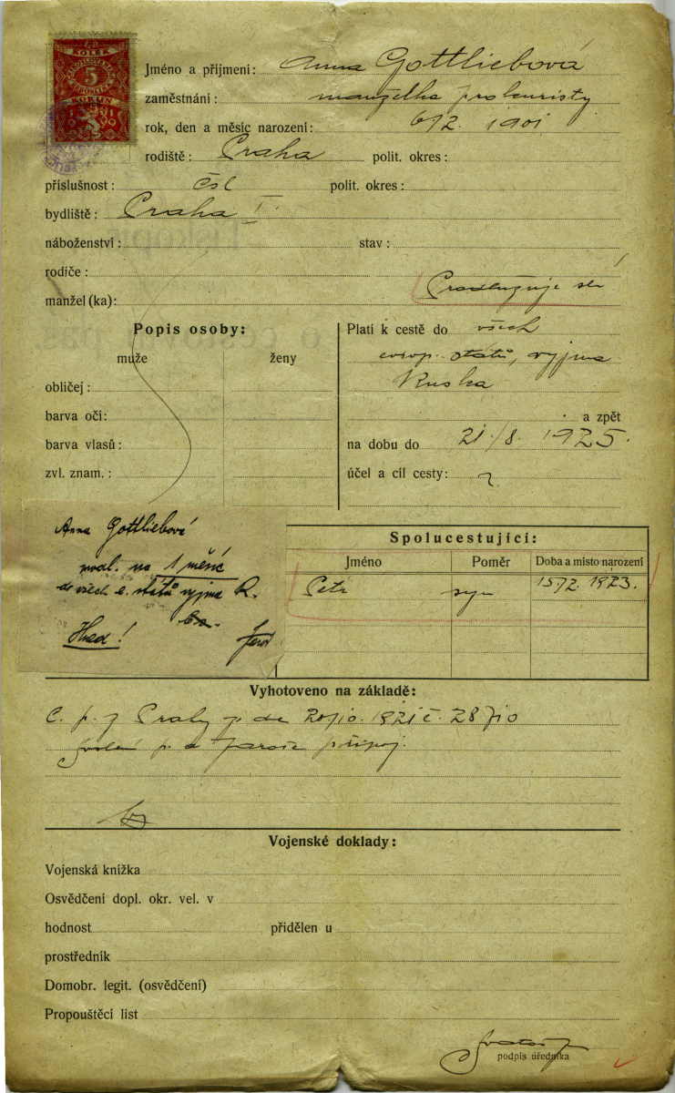 Gottliebová Anna: Passport application