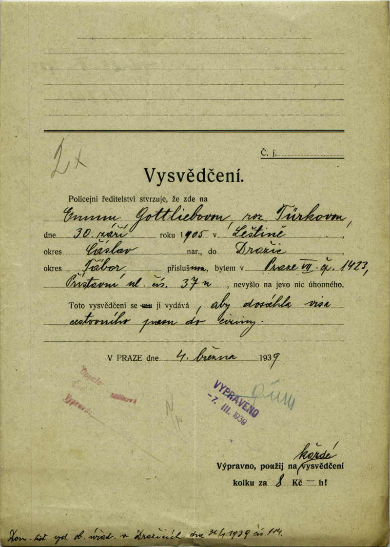 National archives Prague > Police Directorate Prague > 1931-1940 > G > Gottliebová Emma