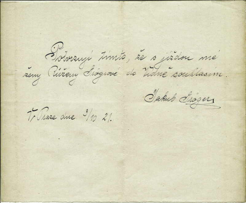 Grögerová Rosalie: Souhlas s odcestováním manželky do zahraničí