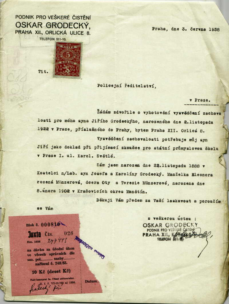 National archives Prague > Police Directorate Prague > 1931-1940 > G > Grodecký Jiří