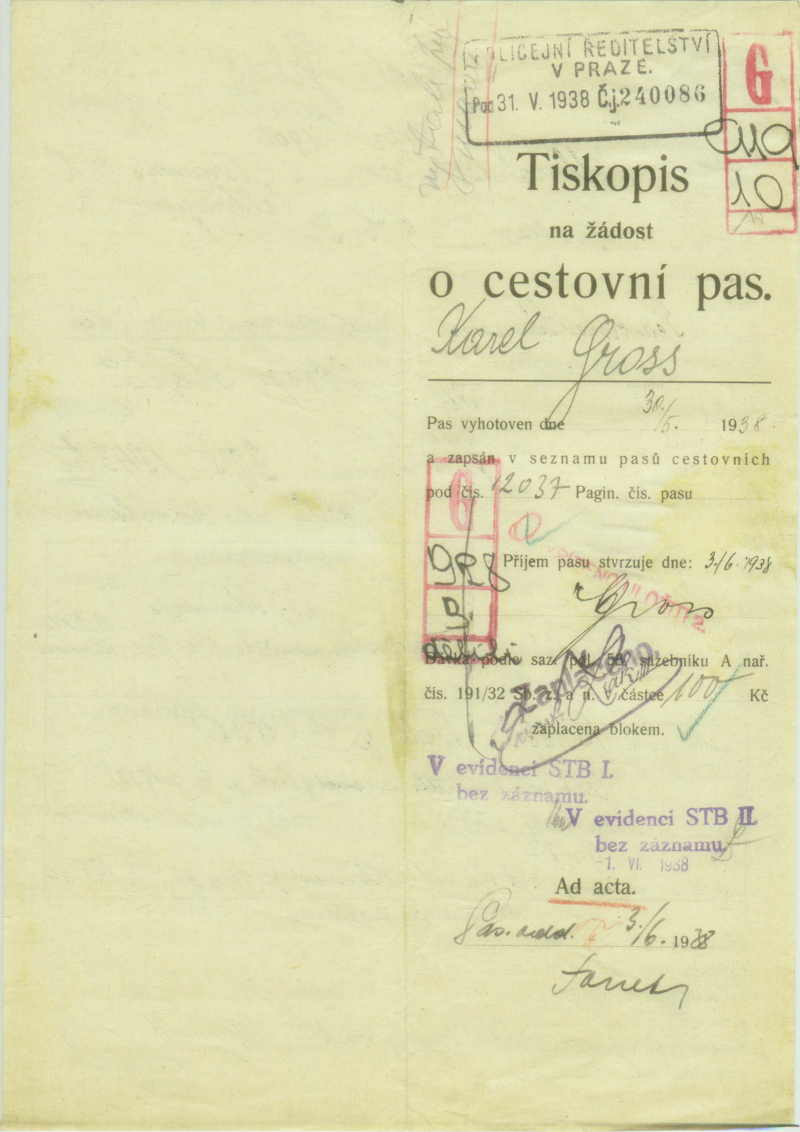 Gross Karel: Application for inclusion into the husbands passport