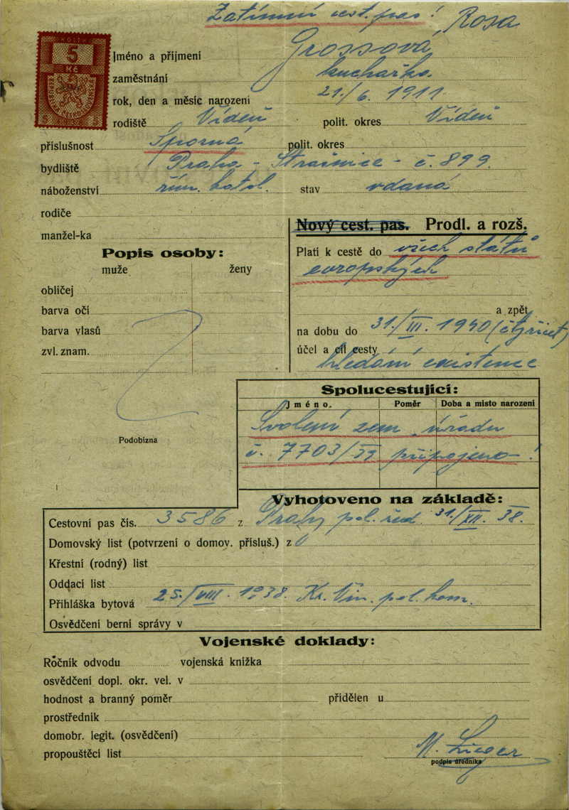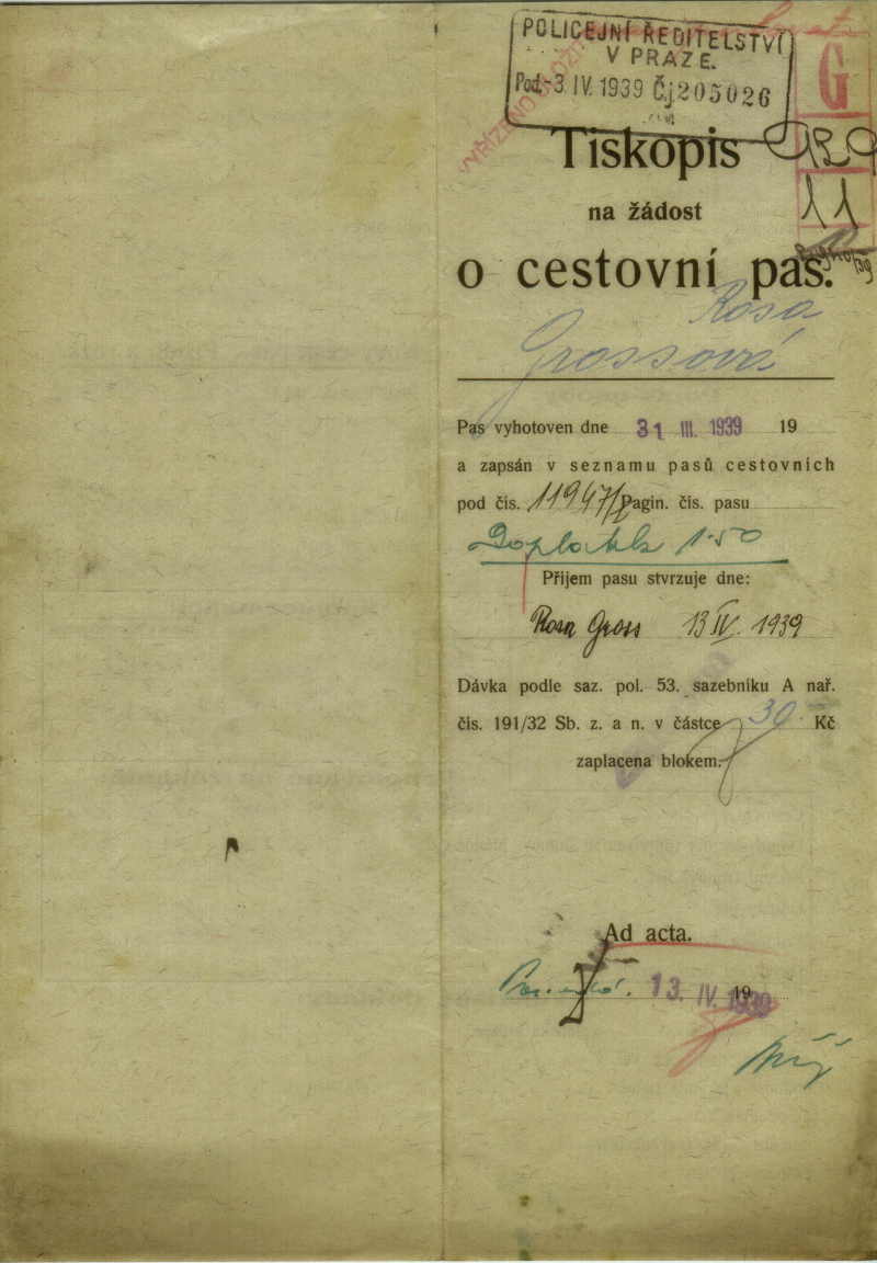 Grossová Rosa: Provisional passport form