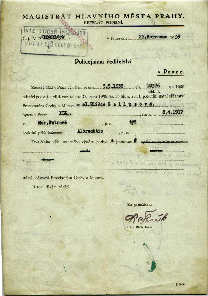 National archives Prague > Police Directorate Prague > 1931-1940 > G > Gallusová Eliesa