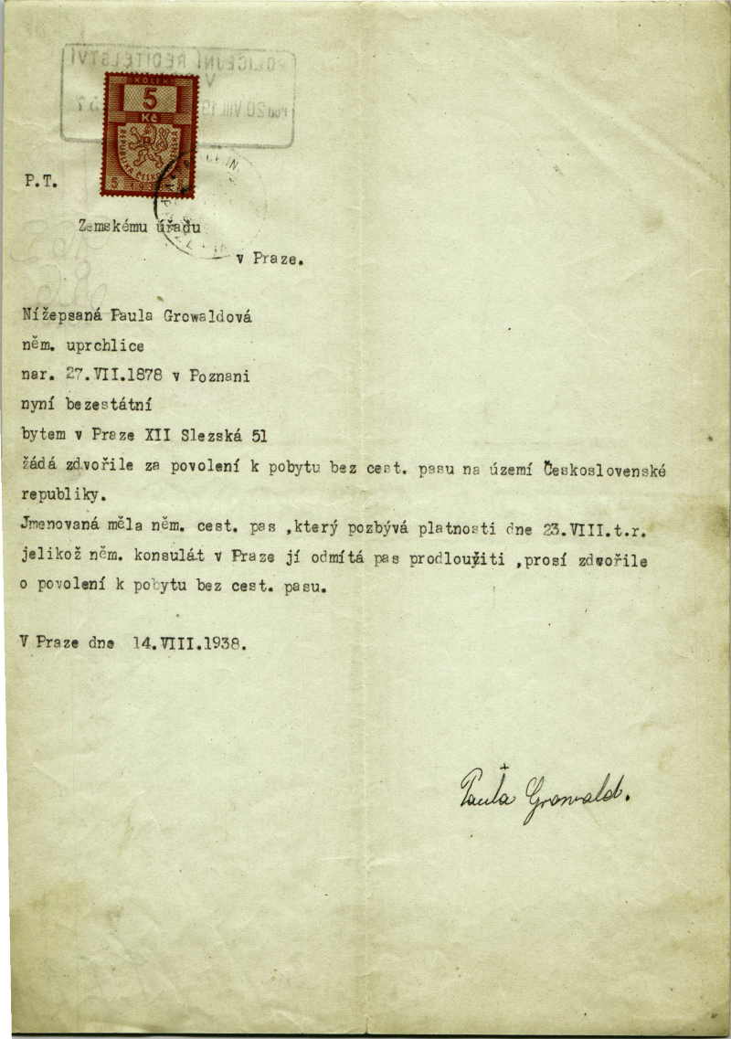 Growaldová Paula: Žádost o povolení pobytu bez cestovního pasu