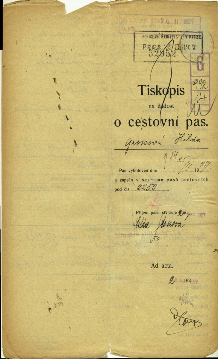 Groszová Hilde: Passport application