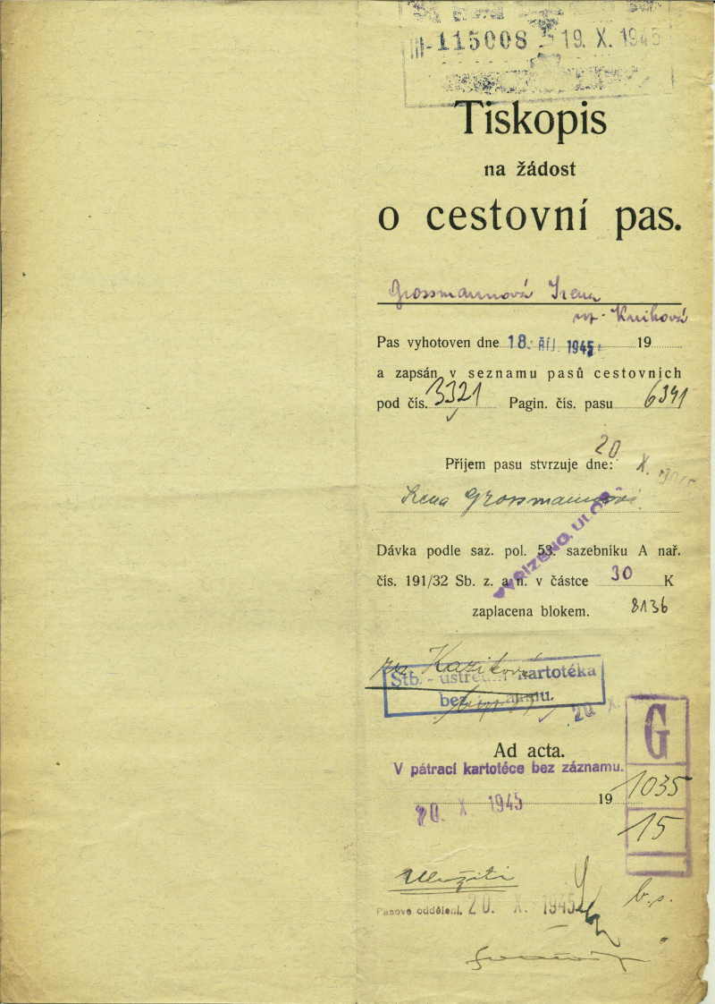 National archives Prague > Police Directorate Prague > 1941-1950 > G > Grossmannová Irena