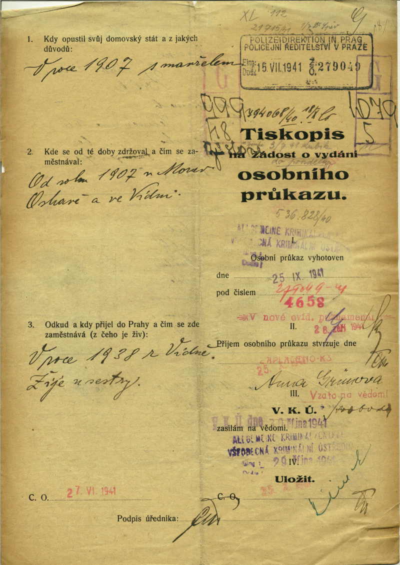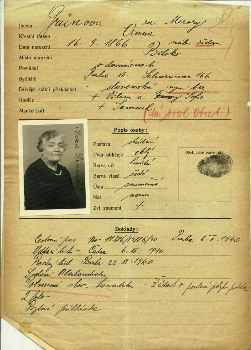 National archives Prague > Police Directorate Prague > 1941-1950 > G > Grünová Anna