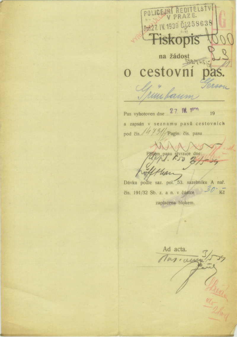 National archives Prague > Police Directorate Prague > 1941-1950 > G > Grünbaum Gerson