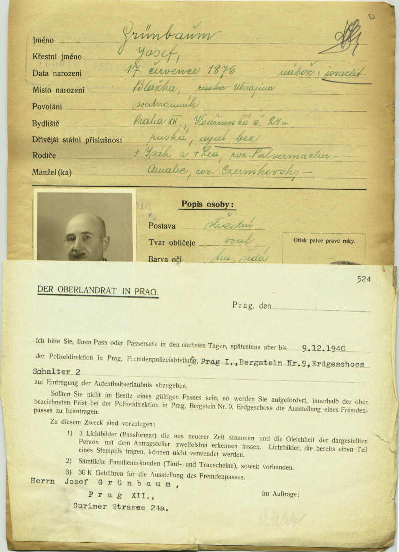 National archives Prague > Police Directorate Prague > 1941-1950 > G > Grünbaum Josef