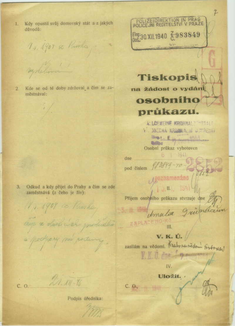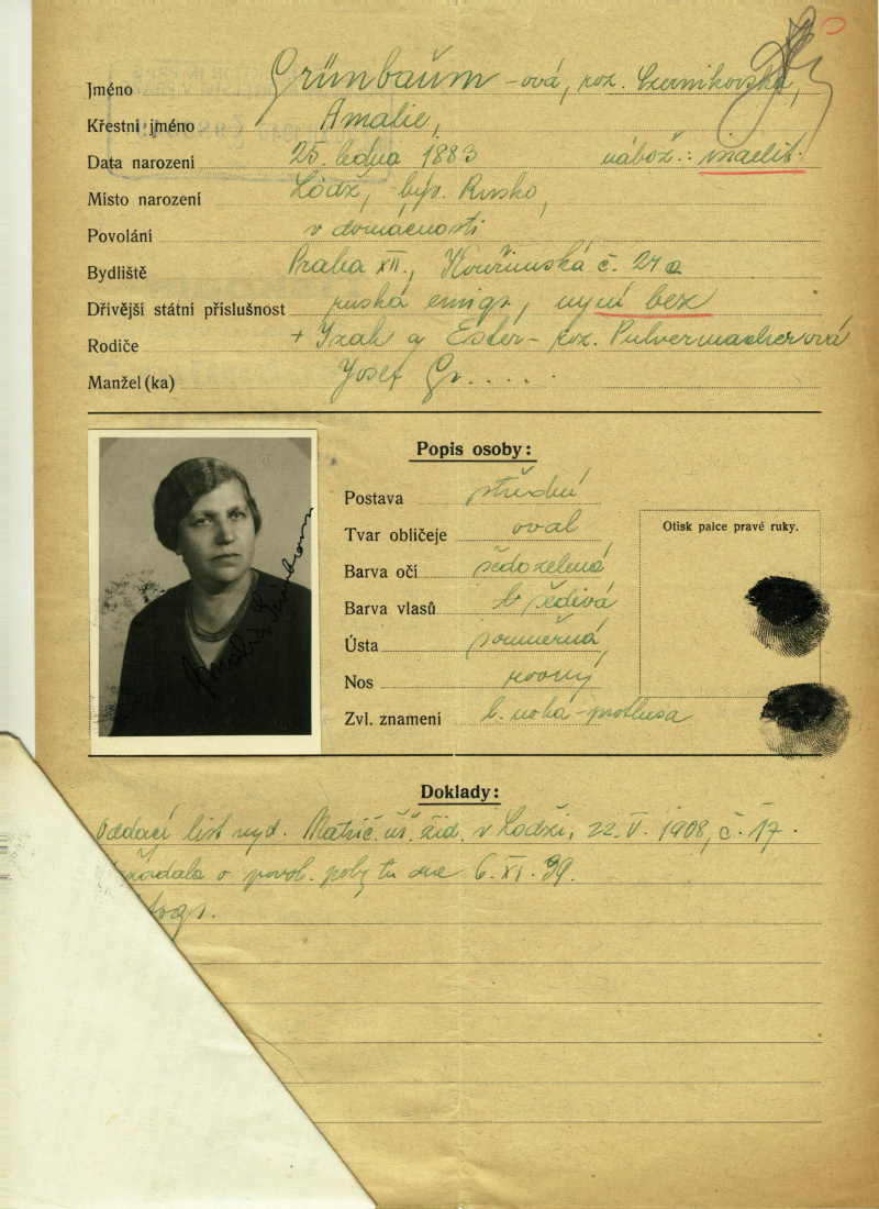 National archives Prague > Police Directorate Prague > 1941-1950 > G > Grünbaumová Amálie