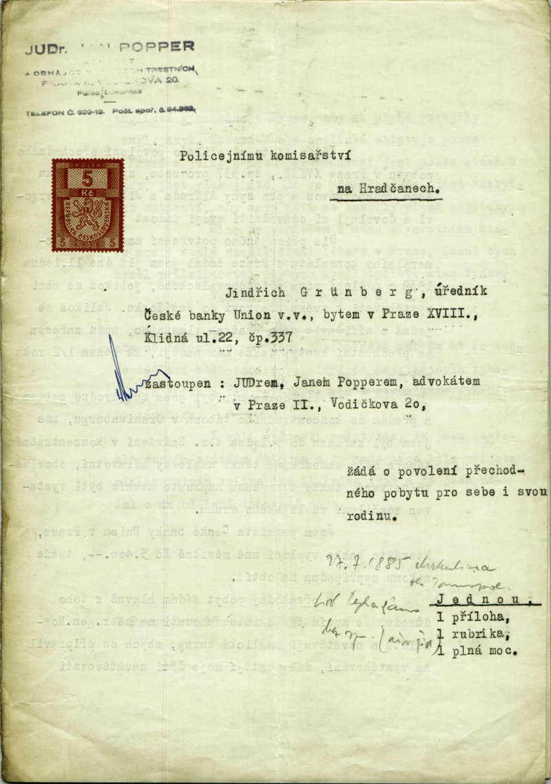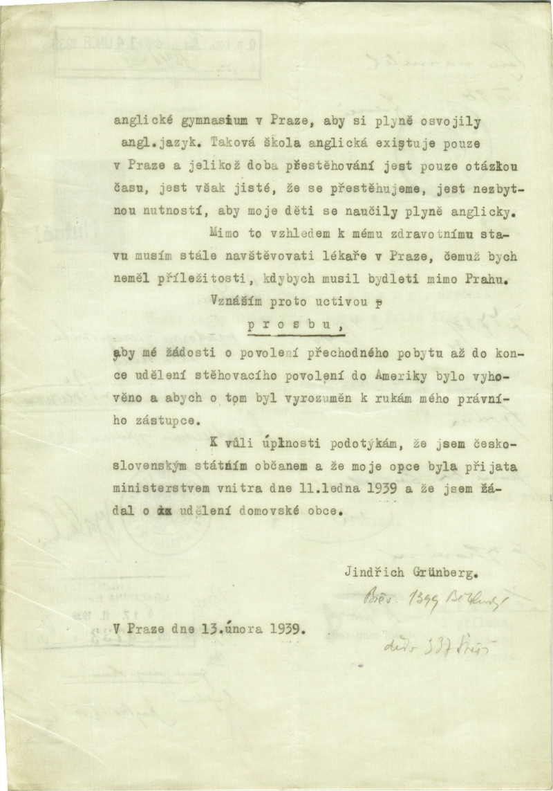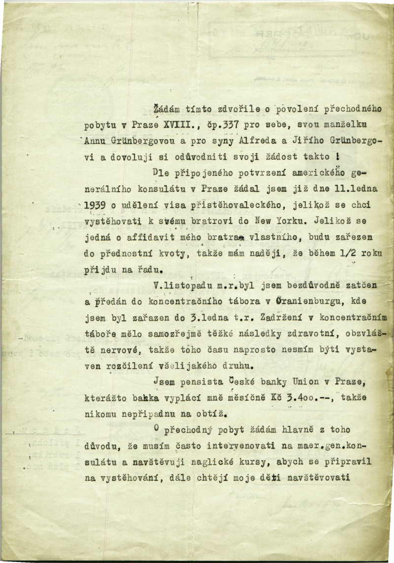 Grünberg Heinrich: Residence permit application