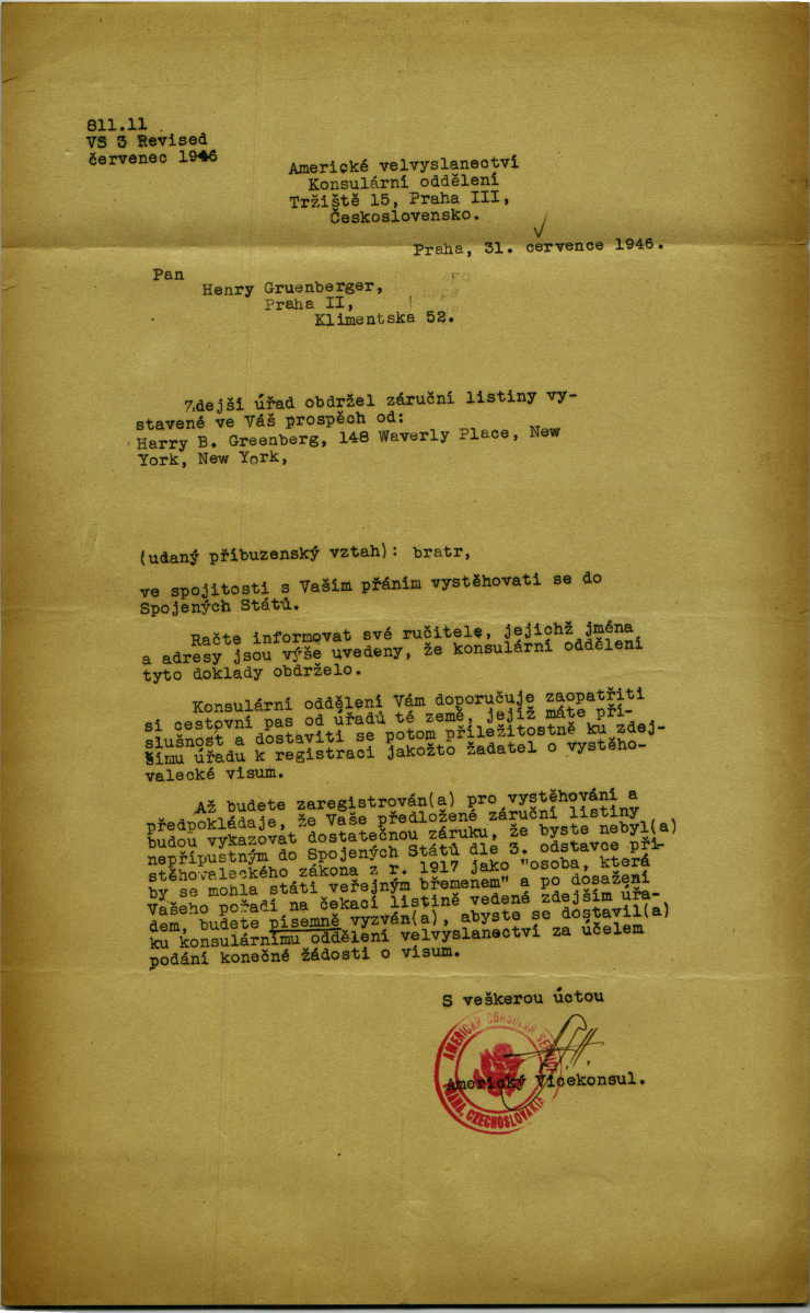 Grünberg Heinrich: Řízení ve věci vystěhování