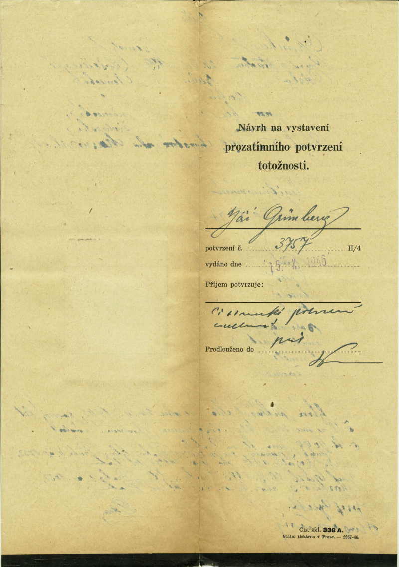 Grünberg Georg: Návrh na vystavení prozatímního potvrzení totožnosti
