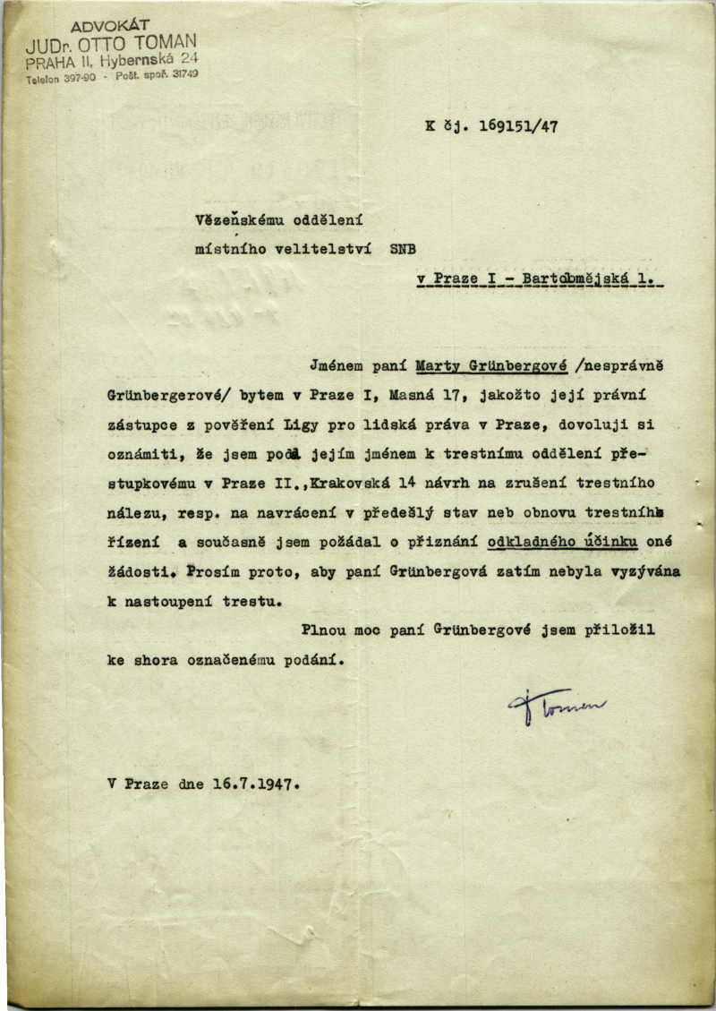National archives Prague > Police Directorate Prague > 1941-1950 > G > Grünbergová Martha