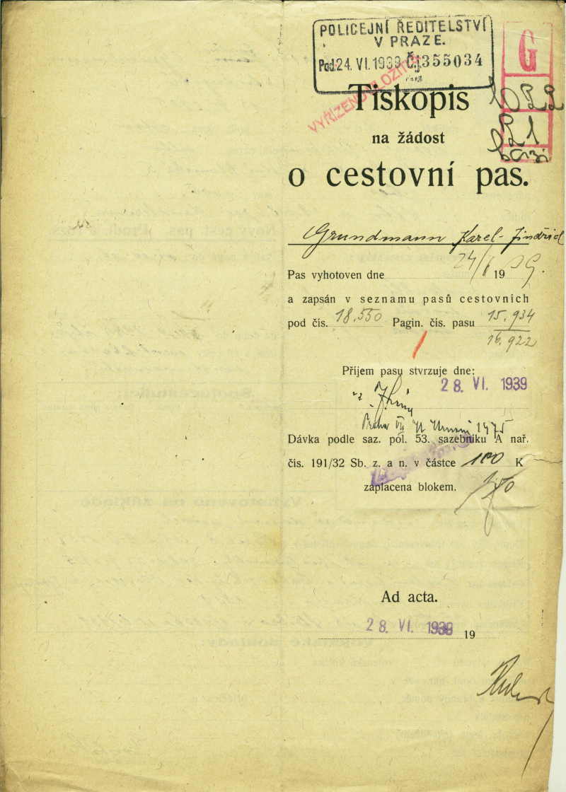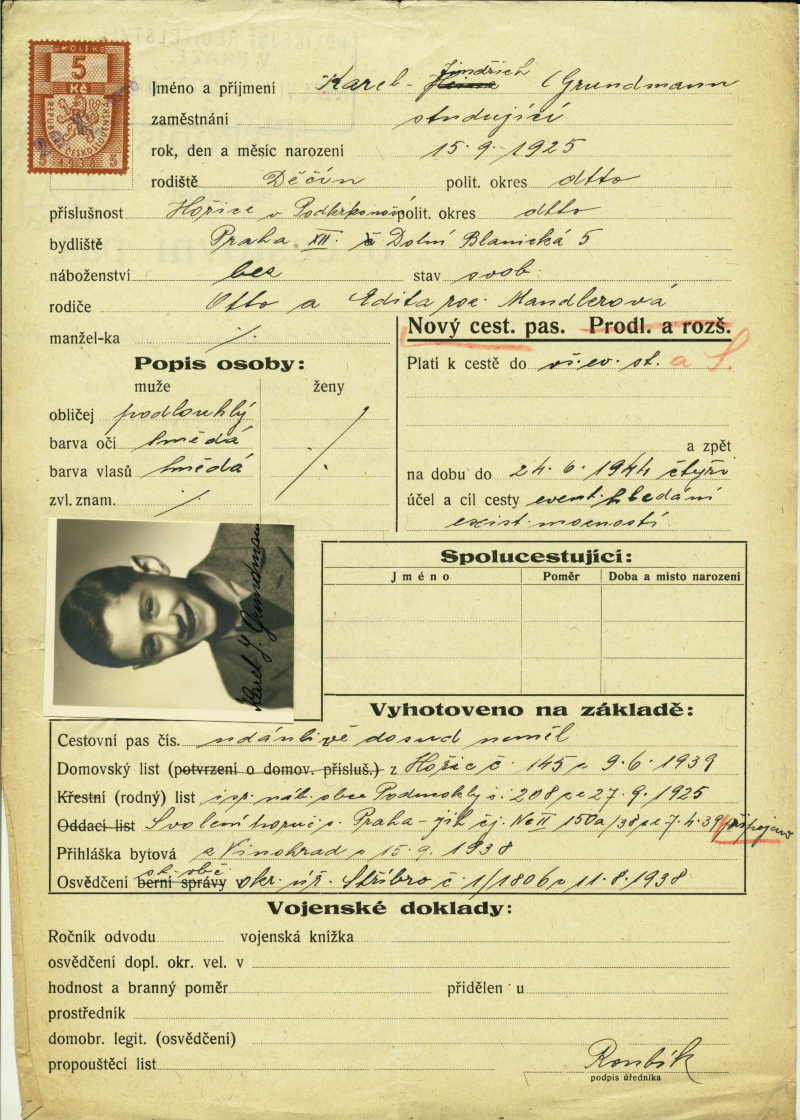 Grundmann Karel: Passport application