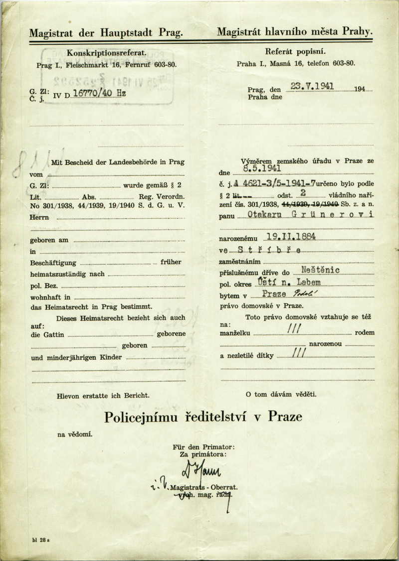 National archives Prague > Police Directorate Prague > 1941-1950 > G > Grüner Otto