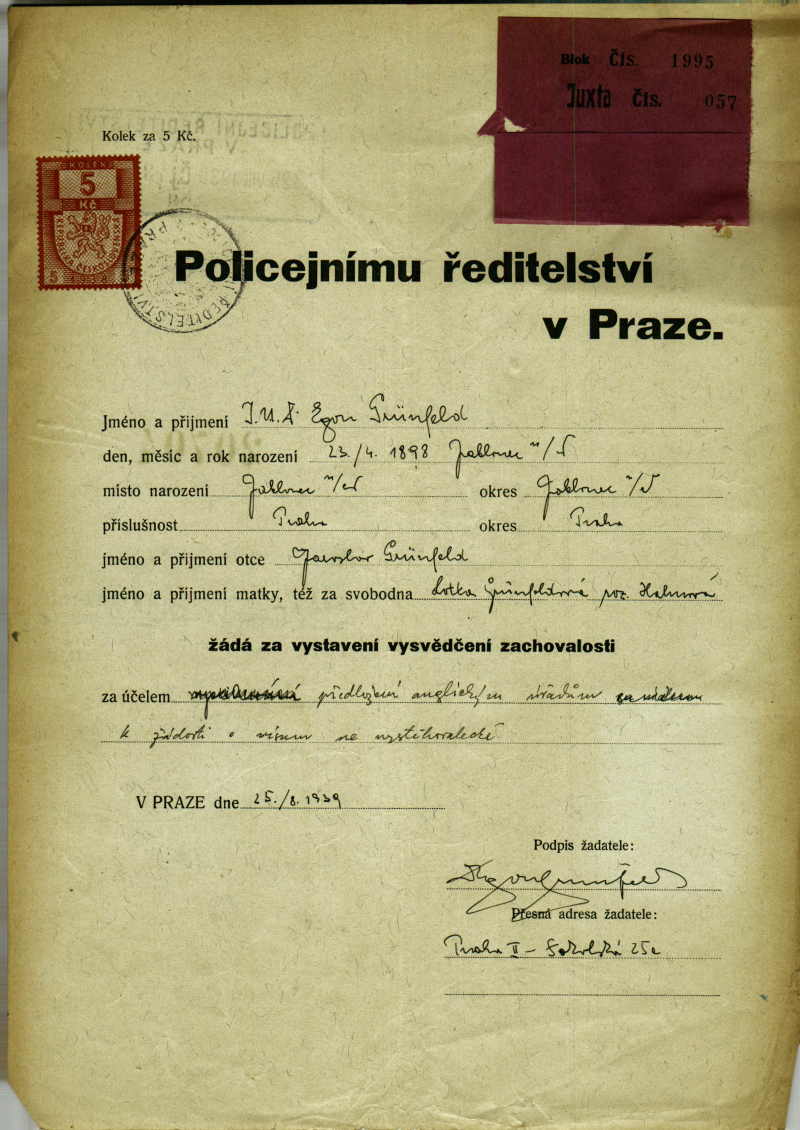 National archives Prague > Police Directorate Prague > 1941-1950 > G > Grünfeld Egon