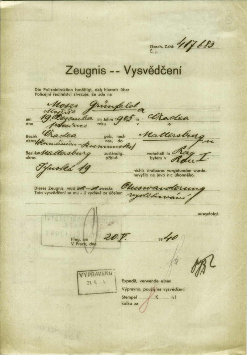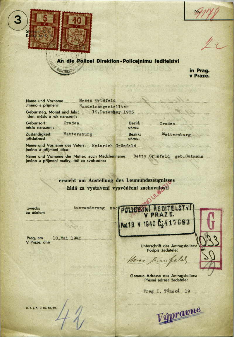 National archives Prague > Police Directorate Prague > 1941-1950 > G > Grünfeld Moses